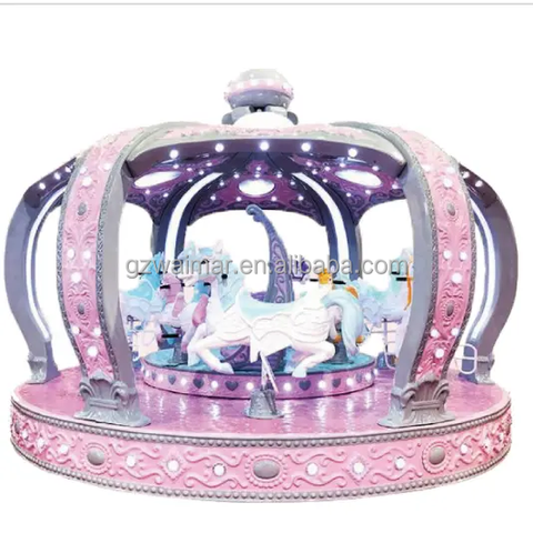 Coin Operated Carousel Rides for Kids 6 Seats Crown Merry Go Round Rides Gamer Car
